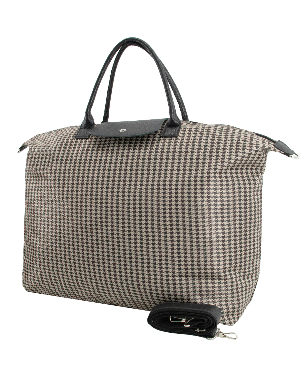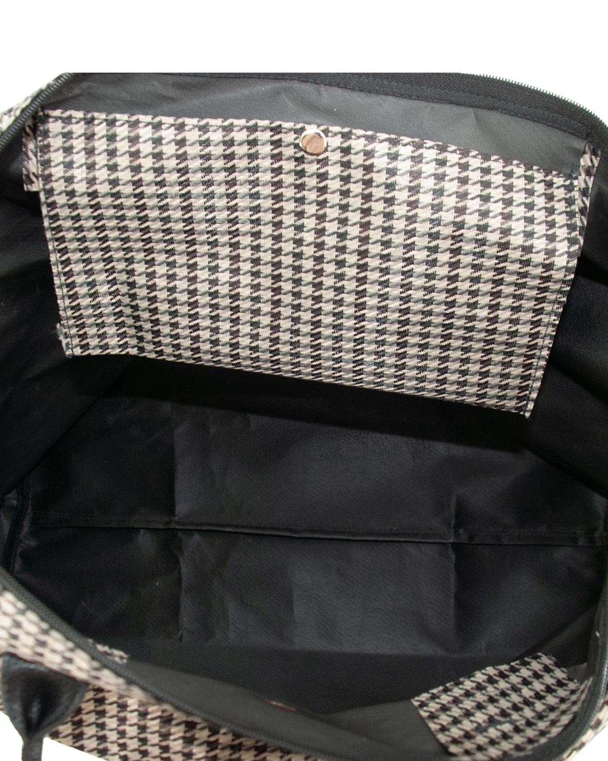 Сумка хозяйственная из текстиля со вставками из коллагеновой кожи с полимерным покрытием. Внутри один отдел по передней стенке карман на молнии.